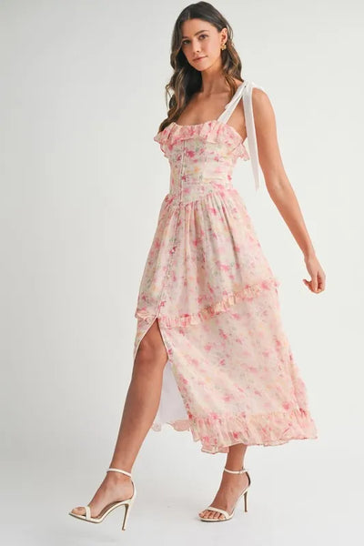 Say hello to your new favorite dress. The Floral Printed Shoulder Strap Midi Dress combines feminine charm with everyday ease. Featuring a flattering A-line cut and adjustable shoulder straps, this lightweight midi is designed to move with you. The eye-catching floral print adds a pop of color that’s perfect for spring and summer, while the midi length keeps things chic and polished.