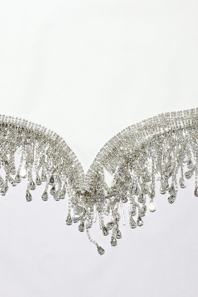• Features: Sleeveless, rhinestone tassel detail, mini