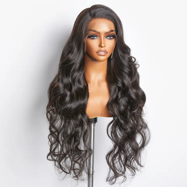 Elevate your style with this bold and luxurious Body-Wave Wig, crafted from 100% human hair and built with 200% density for full, voluminous waves that move with ease. The 13×4 full-frontal lace offers extended parting space, giving you versatile styling options from center part to side-sweep.