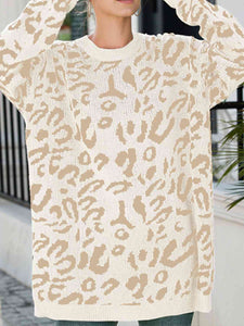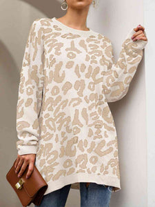 Leopard Round Neck Tunic Sweater