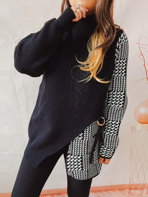 Geometric Turtleneck Long Sleeve Sweater- Fall Knit