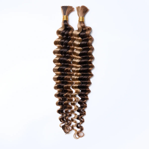 Transform your braids with this premium 20-inch deep wave bulk hair in a sophisticated P4/27 color blend. Crafted for seamless integration and lasting durability, this hair features authentic deep wave texture that adds dimension and movement to protective styles. The generous length provides versatility for various braiding techniques, while the rich P4/27 shade—a harmonious mix of dark brown and honey highlights—complements diverse skin tones. Ideal for box braids, goddess braids, and locs, this bulk hair delivers professional results with minimal shedding. Perfect for stylists and DIY enthusiasts seeking quality hair that maintains its texture and vibrancy throughout wear.