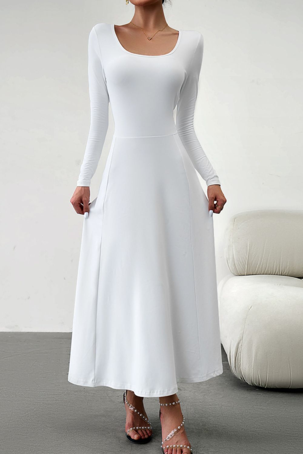 Scoop Neck Long Sleeve Lace-Up Maxi Dress