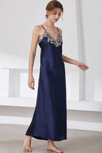 Full Size Lace Trim V-Neck Spaghetti Strap Satin Night Dress
