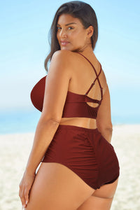 Halter Neck Crisscross Ruched Two-Piece Swimsuit
