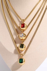 Zircon 18K Gold-Plated Geometrical Pendant Necklace – Available in Olive, Deep Red, Transparent, and Green