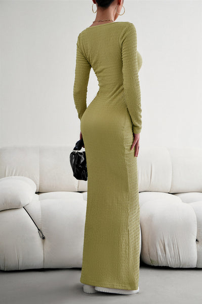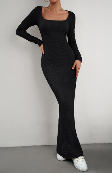 Long Sleeve Square Neck Maxi Bodycon Dress