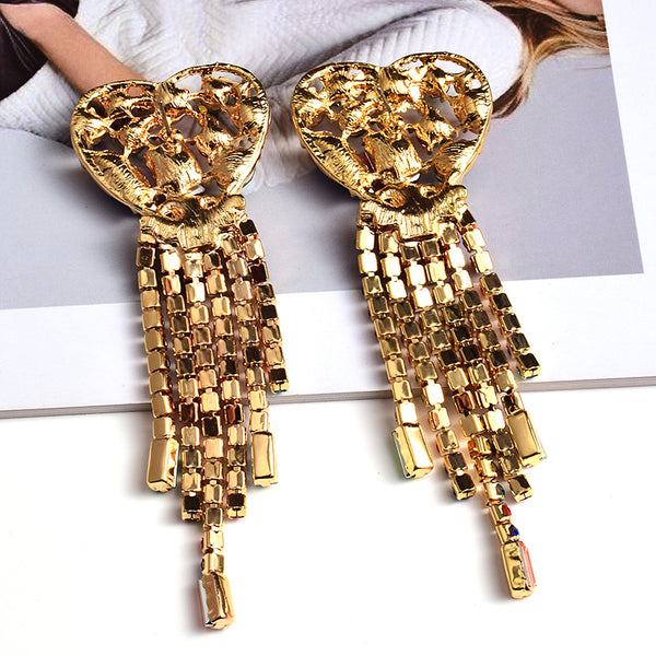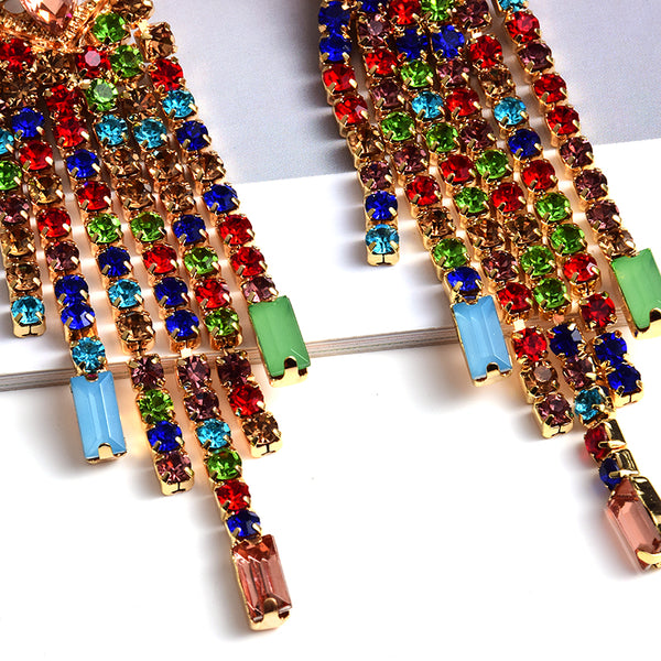 Statement Long Colorful Crystal Earrings