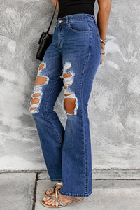 Distressed High Waist Flare Jeans Pants
