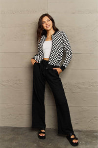 Full Size Plaid Round Neck Long Sleeve Jacket