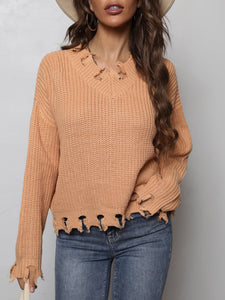 Waffle-Knit Dropped Shoulder Blouse